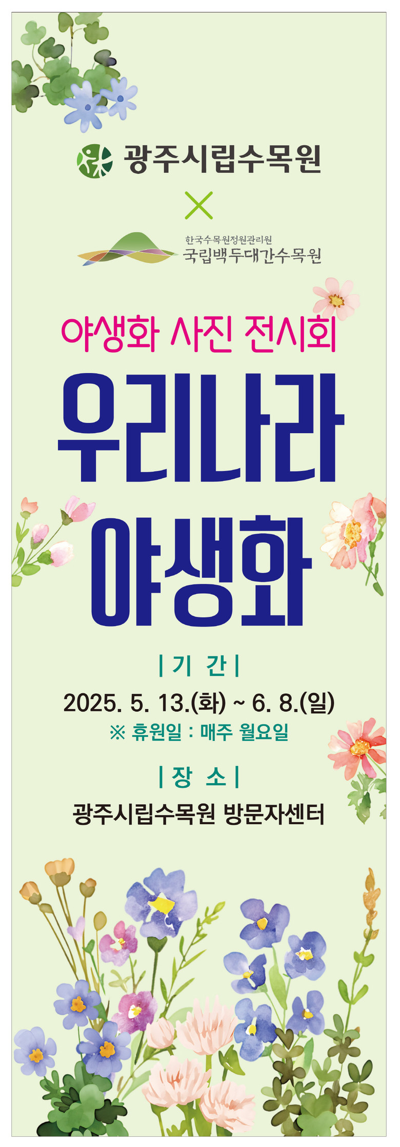 이정신 광주시수목원정원사업소장은 “이번 전시회를 통해 우리나라에서 자생하는 다양한 야생화를 방문객들에게 알려 식물 보전의 중요성에 대한 인식을 높이는 계기가 되길 바란다”며 “다양한 전시와 체험 프로그램을 통해 시민과 자연이 함께하는 수목원을 만들겠다”고 말했다.