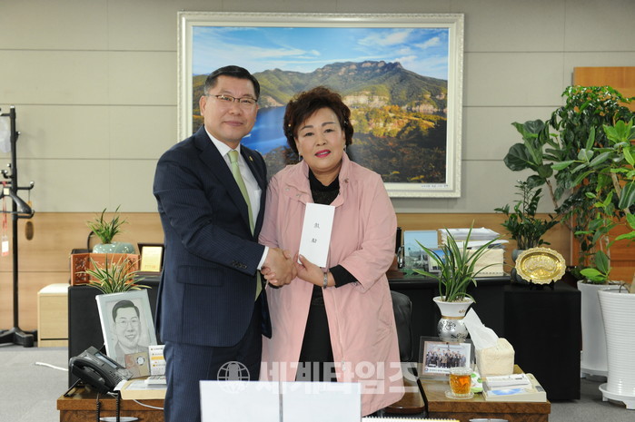 [광주=세계타임즈 이은정기자]이은방 광주광역시의회 의장과 광주광역시장애인체육회 이명자 부회장은 2018년 광주시예산안 편성 및 심의와 관련해 허심탄회한 대화를 나눴다.