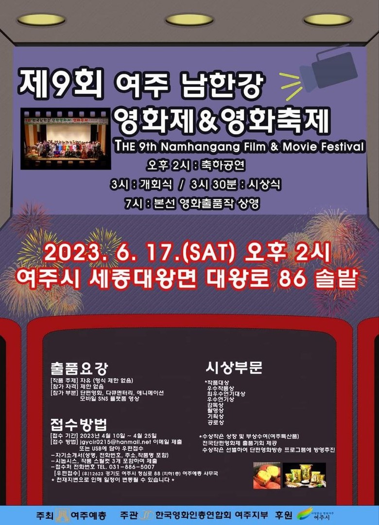 [세계타임즈 백진욱 기자] 지난 17일 여주 남한강 영화제 위원장 정귀영이 여주시 솔밭 정원에서 제9회 여주 남한강 영화제를 개최했다. 정 위영장은 “어느덧 제9회를 맞이하게 되었다며 영화제 개최를 위해 애써주신 분들과 후원사 관계자분들께 진심으로 감사드린다며” 마음을 전했다.