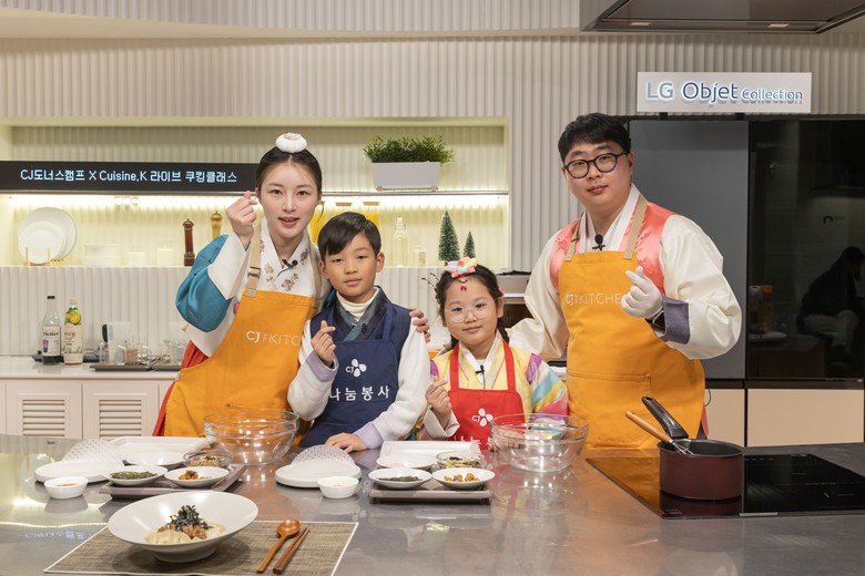 아울러 지난 5일에는 CJ더키친 스튜디오에서 아이들이 명절 음식을 직접 만들어보고 나눠 먹을 수 있도록 라이브 쿠킹클래스를 진행했다. 쿠킹클래스에서는 아이들의 입맛과 영양을 모두 충족할 수 있도록 밤으로 만든 우리나라 전통 간식 ‘율란’, 설 명절 대표 음식 ‘잡채만두’, 저으면 색이 변하는 이색 음료 등 총 4종을 선보였다. 해당 메뉴는 CJ제일제당의 한식 영셰프 양성 프로젝트 ‘퀴진케이(Cuisine K)’ 소속 영셰프 7인이 설 명절 음식을 재해석한 자체 제작 레시피 중 일부를 활용했다. 조리 시연에는 레시피 개발에 참여한 신용준 셰프, 김하은 소믈리에와 부천 소재 도담지역아동센터 아동 2명이 함께 했다.