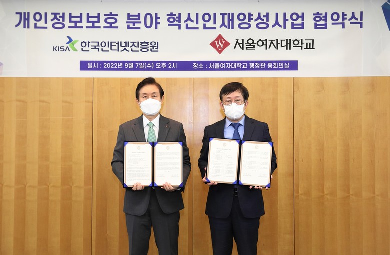 [세계타임즈 백진욱 기자] 한국인터넷진흥원(KISA, 원장 이원태)과 서울여자대학교(총장 승현우)가 지난 7일 개인정보보호 전문성을 갖춘 실무형 여성인재를 본격 양성하기 위한 협약식을 서울여자대학교에서 가졌다.
