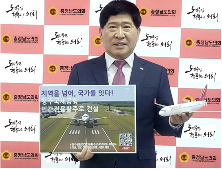 [충남 세계타임즈=이현진 기자] 충청남도의회 홍성현 의장이 청주공항 민간전용활주로 건설을 촉구하는 100만 서명운동 릴레이 캠페인에 동참했다.