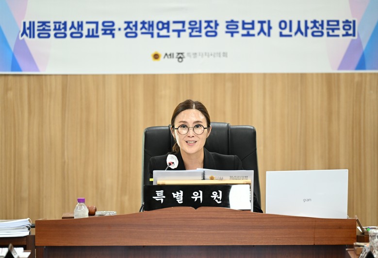 [세종 세계타임즈=이채봉 기자] 세종특별자치시의회(의장 임채성) 세종평생교육·정책연구원장 후보자 인사청문특별위원회(위원장 김현미, 이하 인사특위)는 12일 세종평생교육·정책연구원 원장 후보자에 대한 인사청문을 실시했다.