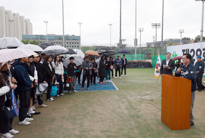 이날 개회식에는 지역을 대표하는 단체·기관장, 선수 및 대회 관계자 등 350여 명이 참석한 가운데 대전시테니스협회장의 대회사를 시작으로 주요내빈 축사, 기념촬영 후 본격적인 대회가 진행됐다.