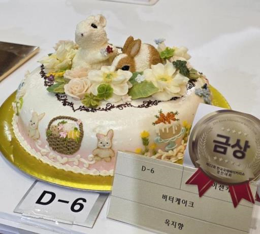 버터케이크 부분에서 금상을 수상한 2학년 옥지향 학생은 동물과 꽃을 활용한 케이크 디자인에서 따뜻한 색감을 조화롭게 표현하여 심사위원들의 높은 평가를 받았다.