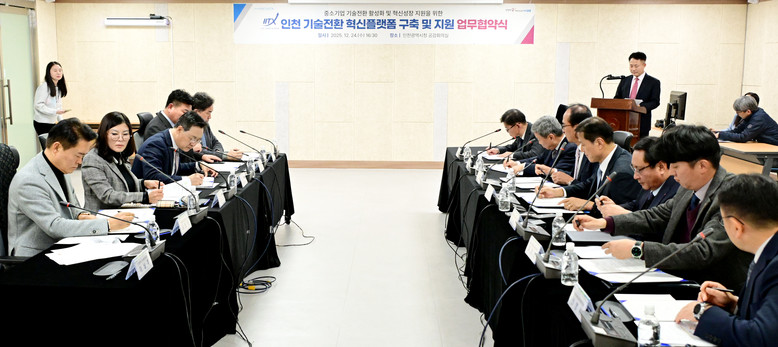 인천시는 중소기업의 기술혁신과 기술전환을 체계적으로 지원하기 위해 기술보증기금, 인천테크노파크, 인천지식재산센터, 8개 중소기업 협·단체와 함께 ‘중소기업 기술전환 혁신플랫폼 구축 및 지원을 위한 업무협약’을 12월 24일 체결했다.