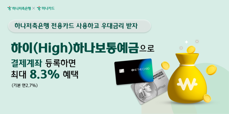 전용카드 결제계좌 '하이(High)하나 보통예금'에 연결시 최대 연 5.1%의 우대금리 제공