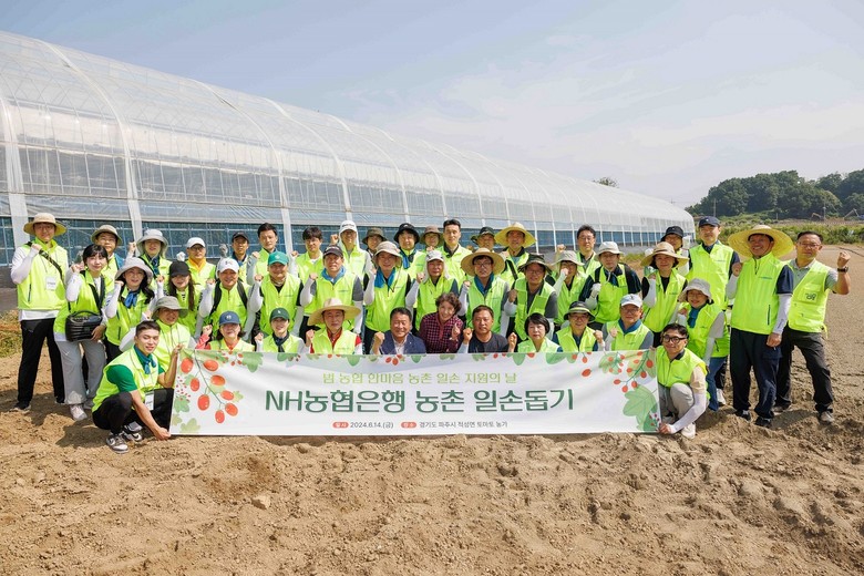 이석용 은행장과 임직원 50여명은 파주시 적성면의 토마토 농가를 찾아 토마토 수확과 순치기 작업을 진행했으며, 인력난 해소 및 생산비 절감을 위해 농가에 농기계를 전달했다.