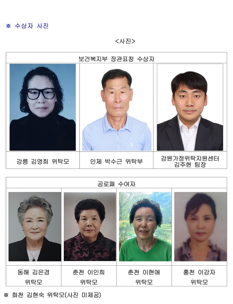 김영희 위탁모(강릉), 박수근 위탁부(인제), 김주현 팀장이 보건복지부 장관표창을 수상했다.