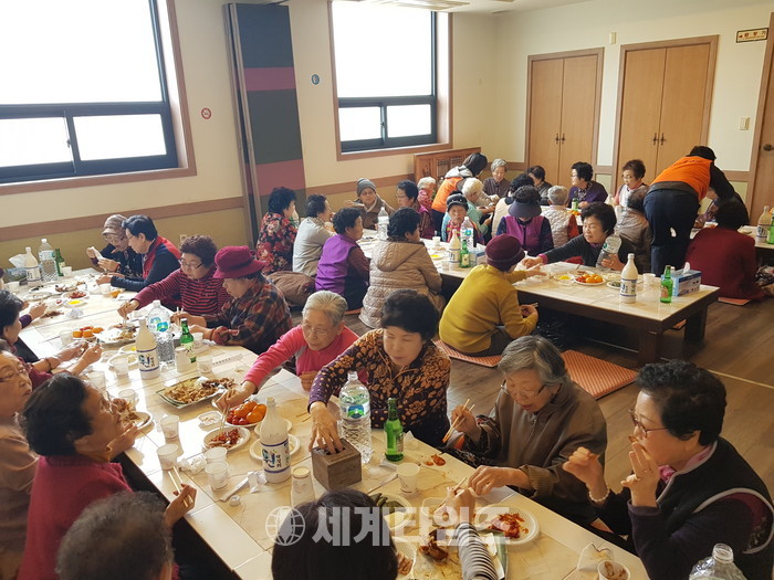 [대전=세계타임즈 이장성 기자] 다양한 봉사활동을 하고 있는 5천명 봉사단체 사랑의 사다리 밴드(리더 이정제)는 계룡대 라이온스클럽(회장 김관구)과 함께 2일 오후12시, 복고풍식당에서 계룡시 독거노인 150분께 짜장면과 바비큐통닭, 다과와 선물 등을 대접해드리면서 사회적 효행을 실천 하였다.
