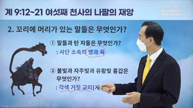 또한 그는 “계시록 9장의 표현을 문자적으로만 놓고 보면 어렵고, 이상하기 짝이 없다”며 “이는 천국 비밀이 예언서인 계시록 안에 있고, 이를 비유로 감춰뒀기 때문”이라고 했다.