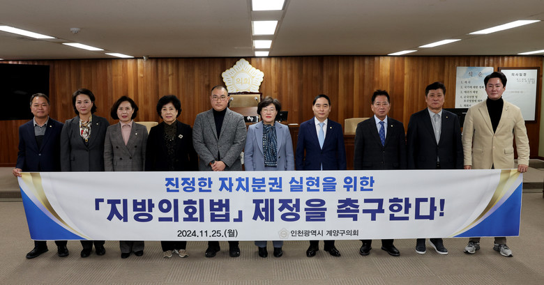 [계양구 세계타임즈=심하린 기자] 인천 계양구의회(의장 신정숙)는 지난 25일 제257회 제2차 정례회 제1차 본회의에서 신지수 의원이 대표 발의한 “진정한 자치분권 실현을 위한 「지방의회법」 제정 촉구 건의안”을 만장 일치로 채택했다.