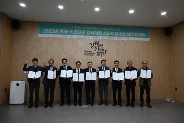 [강원도 세계타임즈=김민석 기자] 강원문화재단(대표이사 신현상)은 4월 7일, 광역-기초 간 협력 도모와 강원형 지역 중심 기초 문화예술교육 기반 마련을 위한 ‘기초재단 협력사업 스타트업’ 사업을 추진하기 위해 8개 지역 기초문화재단과 컨소시엄을 체결했다고 밝혔다.