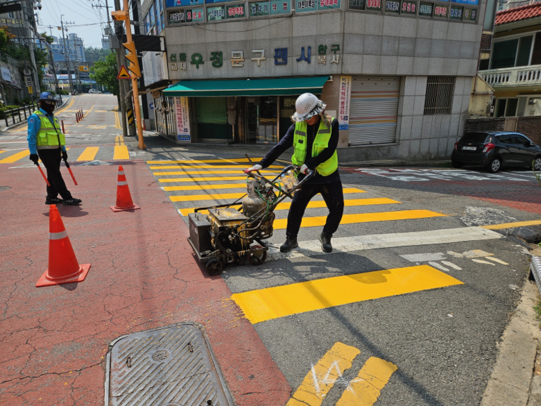 이 사업은 지난 2023년 7월 ‘개정 도로교통법 시행규칙’에 어린이보호구역의 시작과 끝을 명확히 인식할 수 있도록 ‘기·종점 노면표시’를 명문화함에 따라 ‘노란색 횡단보도’ 정비와 함께 운전자의 시인성을 높여 어린이 교통사고 예방에 기여하고자 추진됐다.