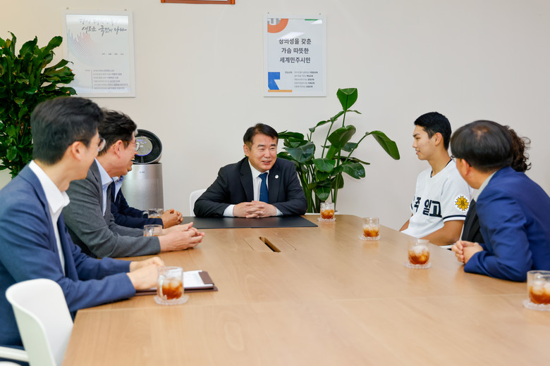 이정선 교육감은 “김성준 선수의 텍사스 레인저스 입단은 광주의 명예를 높이고, 야구 종목 학생 선수들에게 큰 자부심을 줬다“며 “광주에서 많은 체육 인재가 배출될 수 있도록 학교운동부 지원을 확대하겠다“고 말했다.