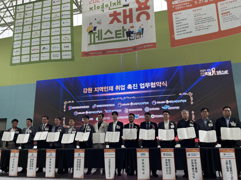 더불어, 이번 행사에서는 강원권 9개 주요 대학, 고용노동부(강원지청·강릉지청·원주지청), 강원특별자치도경제진흥원, (재)강원혁신도시발전지원센터 간 지역인재 취업 촉진을 위한 업무협약 체결식이 함께 진행되었다.