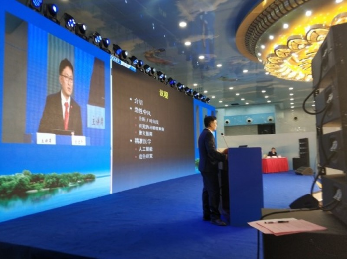 | ▲한림대 춘천성심병원 신경외과 전진평 교수가 2018년 후난성 대재활의료세미나에서 프로젝트 개요를 발표하고 있다. |