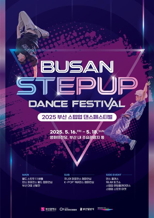 ◈ 본 행사는 ▲'월드 스트릿 일대일(1:1) 배틀'(개인) ▲'댄스 퍼포먼스 월드 챔피언십'(단체) ▲'부산대표선발전'으로 구성… 세븐, 오천, 최영준, 레난 등 유명 안무가·가수 등이 심사위원으로 총출동 [부산 세계타임즈=이용우 기자] 부산시(시장 박형준)는 (사)청년문화진흥협회(회장 김진수)와 오는 5월 16일부터 18일까지 3일간 해운대 영화의전당 등에서 「2025 부산 스텝업 댄스페스티벌」을 개최한다고 밝혔다.