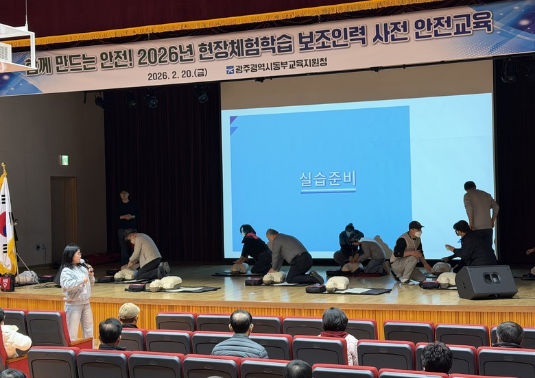 이에 앞서 광주동부교육지원청은 20일 광주시교육청학생독립운동기념회관 대강당에서 보조인력 190명을 대상으로 심폐소생술과 응급처치 이론 및 실습 연수를 실시했다.