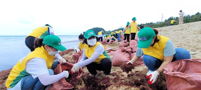 이 곳은 해마다 많은 관광객들이 방문하고 있는 관광지인데 태풍 카눈 등으로 밀려온 붉은 해초가 곳곳에 쌓여있어서 이 곳을 방문한 관광객과 시민의 불편을 줄이고자 신천지자원봉사단에서 적극 나서서 봉사활동을 진행한 것이다.