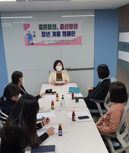 [세계타임즈 백진욱 기자] 행복한가족만들기운동본부 회장 겸 국민의힘 경기도당 저출산대책위원회 위원장인 이서영이 경기창조경제혁신센터에서 3월에 출산을 앞둔 여성과 미혼 회사원 여성들과 함께 '결혼 장려 출산 장려 청년 계몽 캠페인'을 진행했다.