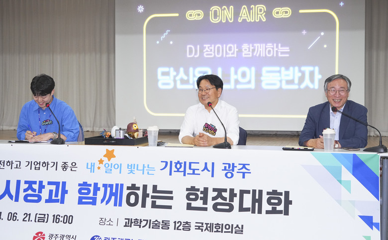 강기정 시장은 이날 현장대화에 앞서 광주테크노파크 사무실을 직접 방문, 지역산업 발전 및 기업 성장에 애쓰는 직원들을 격려했다. 강 시장은 또 직원들과 창업 정책, 도심항공교통(UAM) 등 미래모빌리티 등 광주 산업정책에 대해 논의했다.