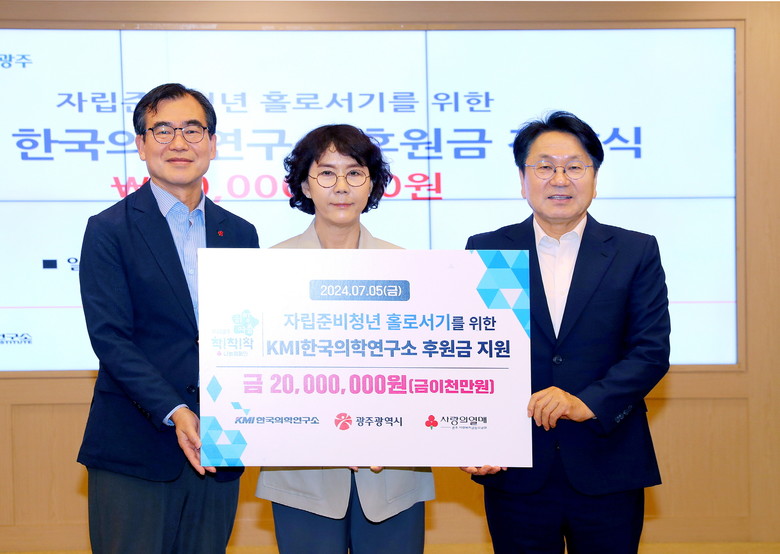 [광주 세계타임즈=손권일 기자] (재)KMI한국의학연구소가 자립준비청년을 위해 후원금 2000만원을 광주시에 전달했다.