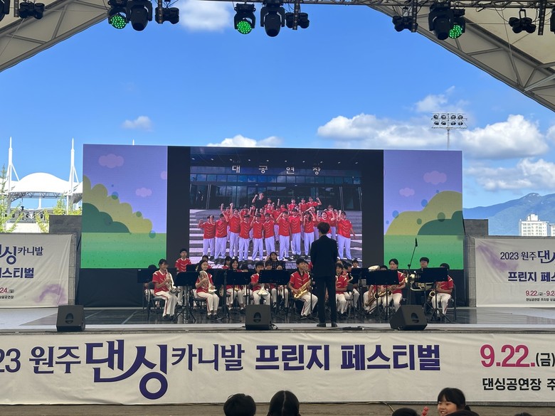 지역 대표 축제인 ‘2023 원주 댄싱카니발 프린지페스티벌’에 초청받은 귀래초등학교 마칭밴드부는 드보르작 교향곡 제9번 ‘뉴월드심포니’와 트로트 ‘아모르파티’ 등 총 4곡의 곡을 연주했다.
