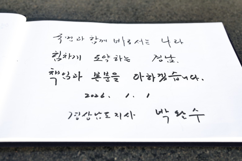 박완수 도지사는 1월 1일 오전 천성산 해맞이 행사에 참석해 1,600여 명의 도민과 함께 일출을 맞이하며 “2026년은 도민 행복이 실질적으로 도약하는 원년이 될 것”이라고 밝혔다. 이어 “천성산의 힘찬 기운을 받아 도민 여러분의 가정에 행복이 가득하고 소망하시는 모든 일이 이루어지길 기원한다”며 새해 인사를 전했다.