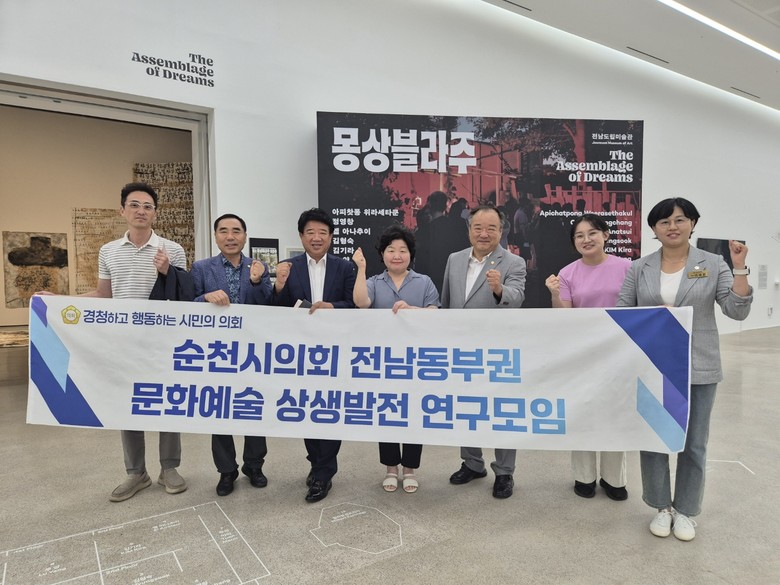 [순천시 세계타임즈=우덕현 기자] 순천시의회(의장 강형구) ‘전남동부권 문화예술 상생발전 연구모임(회장 나안수)’은 지난 12일 광양에 소재한 전남도립미술관에서 문화예술에 관심이 있는 광양·여수시의회 의원들과 모임을 개최했다.