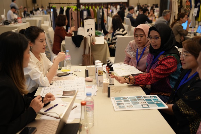 <사진> 롯데는 13일부터 16일까지 멕시코시티에서 '롯데-대한민국 브랜드 엑스포 in 멕시코'를 개최한다. 올해는 처음으로 중남미 국가인 멕시코에서 진행하며 뷰티, 식품, 생활용품 분야의 중소기업 100개사가 참여한다. 사진은 지난 해 9월 자카르타에서 진행한 B2B 수출상담회에서 현지 유통기업이 상담하는 모습.
