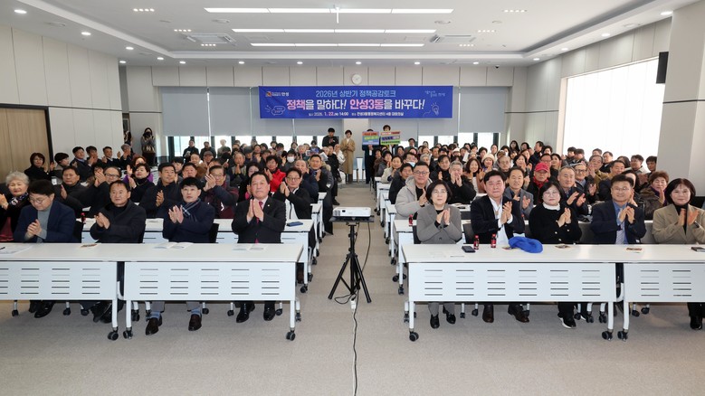 [안성시 세계타임즈=송민수 기자] 안성시 안성3동은 지난 22일 안성3동 행정복지센터 4층 대회의실에서 주민 150여 명이 참석한 가운데 ‘2026년 상반기 안성3동 정책공감토크’를 성황리에 마무리했다.
