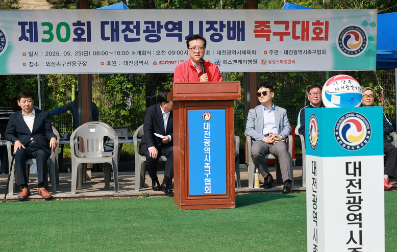 [대전 세계타임즈=이채봉 기자] 대전시의회 조원휘 의장은 25일 유성구 외삼족구전용구장에서 개최된 제30회 대전광역시장배 족구대회에 참석해 원활하고 안전한 대회 진행을 기원하며 전국 최고 수준의 체육 인프라 확충을 약속했다.