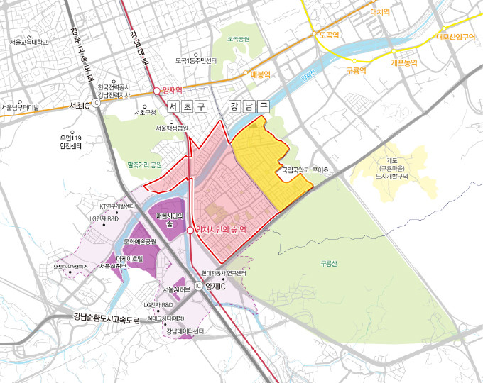 이번 지정은 서초구(111만㎡)와 강남구(46만㎡)를 아우르는 총 157만㎡ 규모의 ‘양재·개포 ICT 특정개발진흥지구’ 통합 전략의 결실이다. 2021년 12월 양재가 대상지로 선정된 데 이어 2023년 2월 개포4동 일대가 추가로 대상지에 올랐다. 2024년 4월 양재·개포 지구 지정을 통합 추진하기로 한 뒤, 두 자치구는 진흥계획 수립과 교통·경관 검토, 전략환경영향평가를 마치고 도시계획 심의 절차를 통과했다.