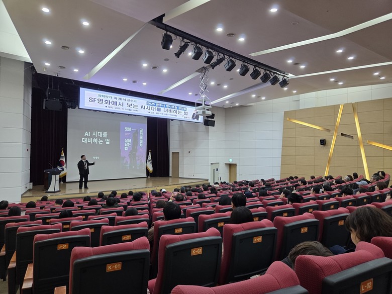 숭실사이버대학교 환경안전공학과 곽재식 교수는 ‘로봇공화국에서 살아남기’, ‘미래를 파는 상점’ 등의 저자이며 EBS ‘인물사담회’, SBS 파워FM ‘과학편의점’, KBS1 라디오 ‘곽재식의 과학플러스’ 등 방송을 통해 대중에게 친숙한 강사로 알려져 있다. 곽 교수는 이번 강연에서 SF영화를 사례로 들며 AI시대를 살아가기 위한 자세와 전략을 쉽고 흥미롭게 설명했다.