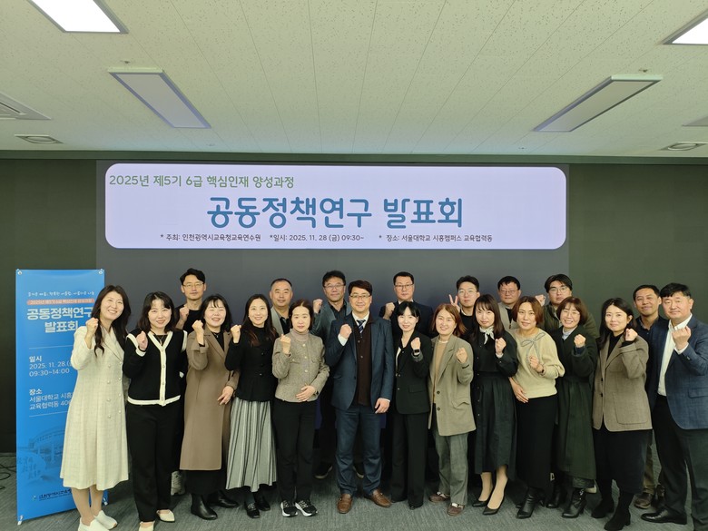 [인천 세계타임즈=심하린 기자] 인천광역시교육청교육연수원(원장 최철호)은 11월 28일 서울대학교 시흥캠퍼스에서 ‘제5기 6급 핵심인재 양성과정’ 공동정책연구 발표회를 개최했다.