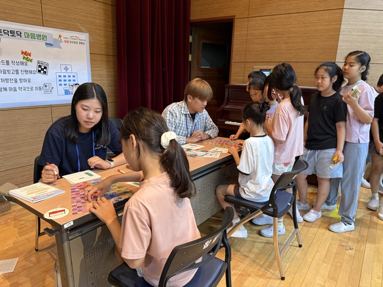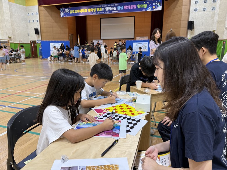 교육 멘토링 첫날인 8월 21일(목)에는 1~6학년 학생들이 ‘창의융합한마당 부스 체험 활동’에 참여하여 다양한 교과가 융합된 다문화, 마음건강 및 발명 부스에서 탐구 활동을 즐겼다. 부스 체험 외에도 2, 4, 5, 6학년은 대학생 멘토와의 첫 만남과 협력 수업을 함께 진행하며, 대학생과의 교류 속에서 새로운 학습 동기를 얻는 시간이 되었다.