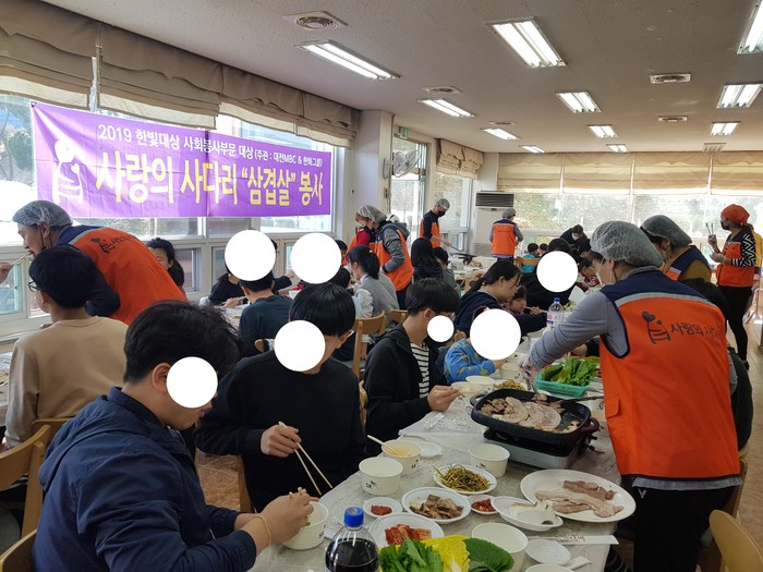 [대전=세계타임즈 이채봉 기자] 9천명 SNS 대전시 봉사단체 사랑의 사다리 밴드(리더 이정제)는 31일 오전10시~오후1시, 대덕구 연축동 성우보육원(원장 김익자)에서 삼겹살과 목살 봉사로 우리 사회의 따뜻한 사랑을 전달하였다.
