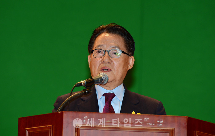 11일 오후 광주 서구 치평동 김대중컨벤션센터에서 국민의당 천정배 전 상임공동대표의 자발적 지지모임인 '자구구국(自救救國) 포럼'의 창립식이 열렸다. 창립식에 참석한 국민의당 박지원 대표가 축사를 하고 있다. 2017.02.11
