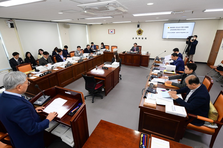 제409회 정례회 기간인 17일 경남도의회 교육위원회는 경남교육청 홍보담당관과 정책기획관, 감사관, 학교정책국을 대상으로 행정사무감사를 벌였다. 이날 감사에서는 중소기업과 지역업체 물품 사용 독려, 돌봄교실 프로그램 개발 등에 대한 질의와 점검이 이뤄졌다.
