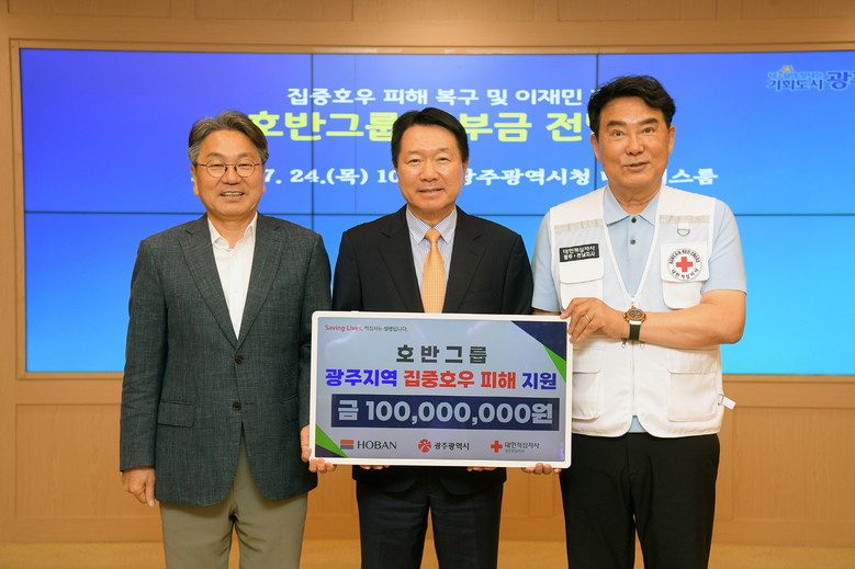 [광주 세계타임즈=손권일 기자] 광주광역시(시장 강기정)는 24일 호반그룹이 집중 호우피해 복구 및 이재민 지원 등을 위해 1억원의 기부금을 전달했다고 밝혔다.