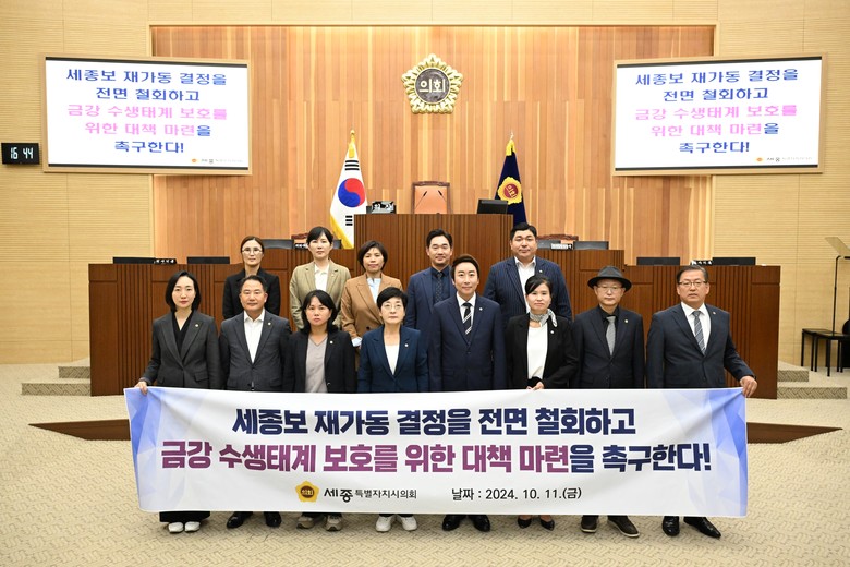 이순열 의원은 “현 정부와 세종시가 금강물을 가두고 바꿔나가려고 하는 것은 인공적으로 물을 가둔 관광객의 유희만을 위한 것이다”라며, “세종보 재가동으로 인한 수생태계 훼손을 막고자 한다”며 결의안 채택의 이유를 설명했다.