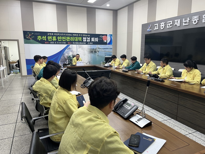 [고흥군 세계타임즈=우덕현 기자] 고흥군(군수 공영민)은 지난 17일 군청 재난종합상황실에서 ‘추석 연휴 안전관리 대책 점검회의’를 개최하고, 연휴 기간 군민과 귀성객의 안전 확보를 위한 종합대책을 논의했다.