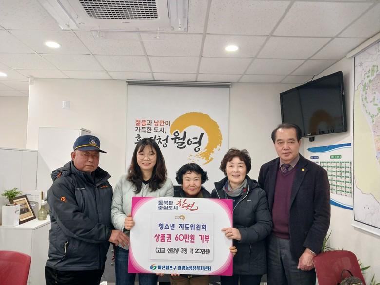 박숙자 청소년지도위원회 위원장은 “새해를 맞이하여 어려운 여건에서도 학업에 정진하고 있는 고교 신입생 청소년에게 도움을 주고자 장학금을 전달하게 됐으며, 앞으로도 월영동 청소년들을 위한 선도보호 활동에도 더욱 적극적으로 참여하겠다.”고 전했다.