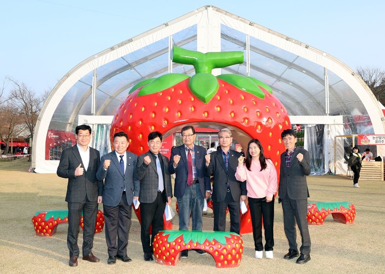 현장에는 윤기형 위원장(논산1‧국민의힘), 오인환 부위원장(논산2‧더불어민주당), 김복만 위원(금산2‧국민의힘), 김석곤 위원(금산1‧국민의힘)이 참석했다. 위원들은 개막식 참석에 앞서 행사장 주요 동선과 프로그램 운영 상황을 확인하고, 축제장을 찾은 방문객들의 반응과 현장 분위기를 살폈다. 특히 딸기산업 홍보 및 체험형 콘텐츠, 글로벌 관광축제로의 확장 가능성 등을 중점적으로 점검했다.