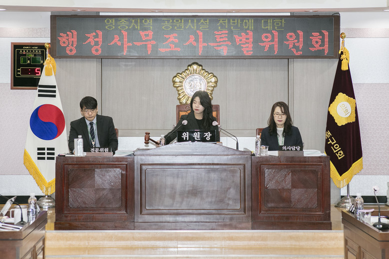 이번 영종지역 공원시설 전반에 대한 행정사무조사는 영종지역 내 공원시설의 유지·관리 업무 전반에 대해 문제점을 파악한 뒤 시정요구 및 대안제시를 통해 업무 개선을 유도하고자 공원시설을 관리하는 인천광역시 중구 도시공원과와 인천중구시설관리공단을 조사대상으로 민원이 집중 제기된 영종지역의 26개소 공원에 대한 철저한 현장확인 및 검증 등 밀도 높은 조사활동을 실시했다.