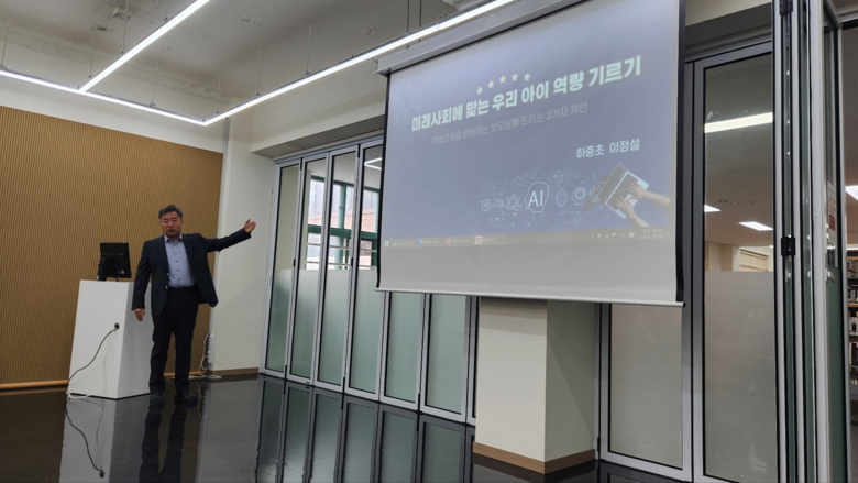 [경기도 세계타임즈=송민수 기자] 경기도 시흥에 있는 하중초등학교(교장 이정설)는 10월 10일 학부모 대상으로 본교 꿈빛도서관 수업공간에서 “미래사회에 맞는 우리 아이 역량 기르기”라는 주제로 독서교육 연수를 운영하였다.