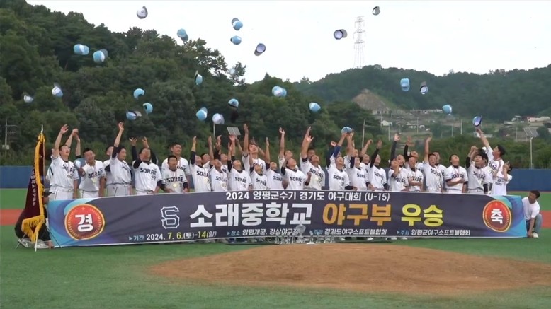 [시흥시 세계타임즈=송민수 기자] 소래중학교(학교장 장정재) 야구부가 2024.07.14.(일)에 2024 양평군수기 경기도야구대회(U-15)에서 우승을 차지했다. 2022년 시흥시에서 학교체육 단체 구기 종목 전국대회 첫 입상(3위 2회)을 시작으로 2023년 부산에서 열린 2023 U-15 전국유소년야구대회에서 3위에 입상한 바 있다. 소래중학교는 2023년 경기도교육감배대회에서 아쉽게 준우승에 그쳤지만 2023년 용인시협회장기에서 우승기를 들어올렸다.