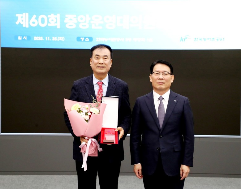 [충남 세계타임즈=이현진 기자] 방한일 충남도의원(예산1·국민의힘)은 지난 25일 한국농어촌공사 중앙운영대의원회 부의장으로 재임하며 농어촌공사의 정책혁신과 조직 발전에 크게 기여한 공로를 인정받아 감사패를 수여받았다.