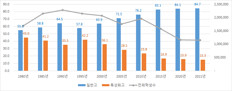 특성화고 | 31.8 | 24.6 | 19.9 | 21.0 | | |